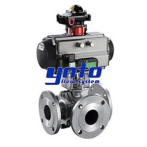 三通法蘭氣動球閥采用一體化結構,與 YNTO 氣動執行器相配,造型美觀、輕便宜人,拆裝快捷,操作靈活,性能卓越,配套簡單,流通能力大,廣泛應用于食品,環保,輕工,石油,造紙,化工,電力等行業的工業自動化系統中。